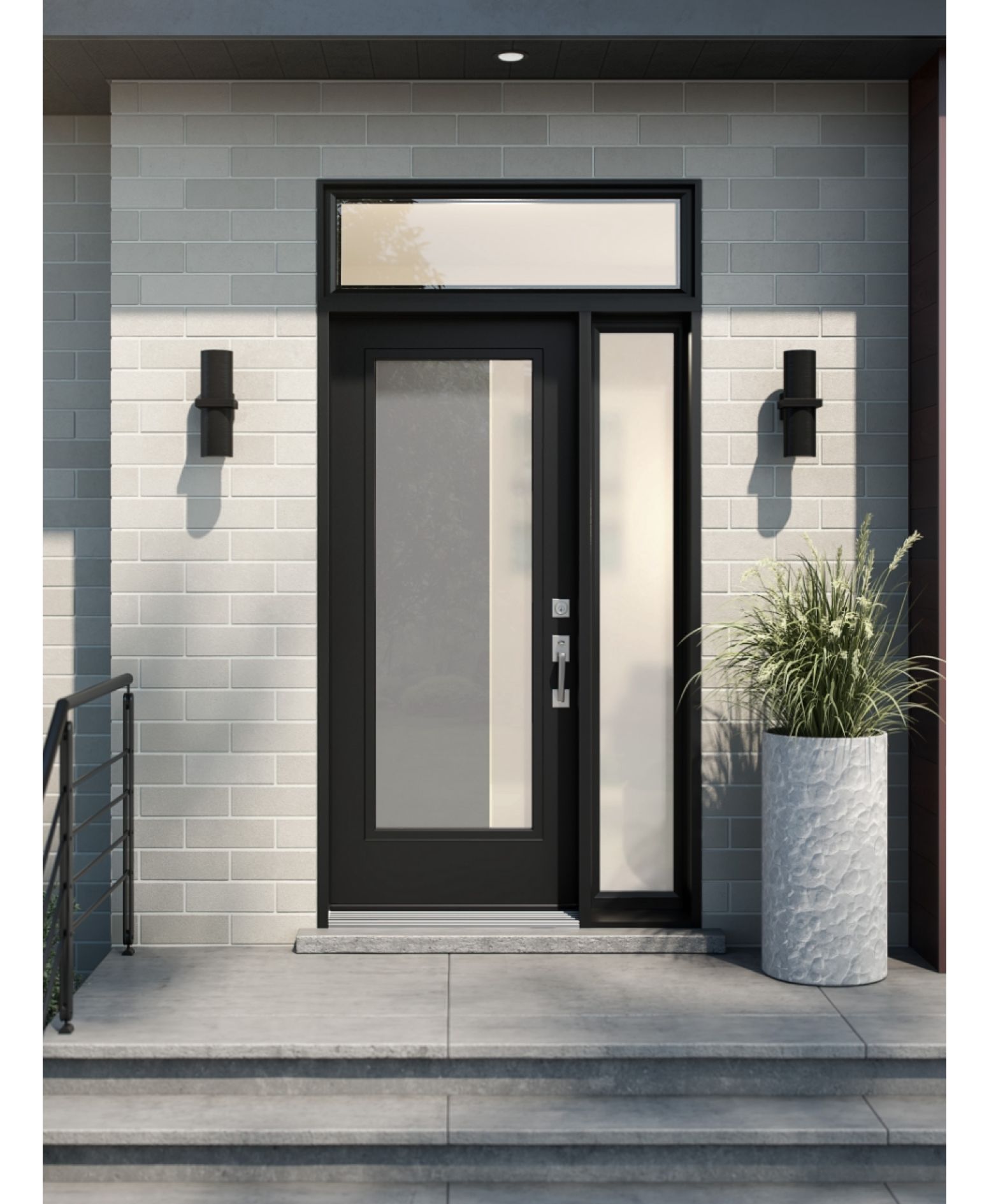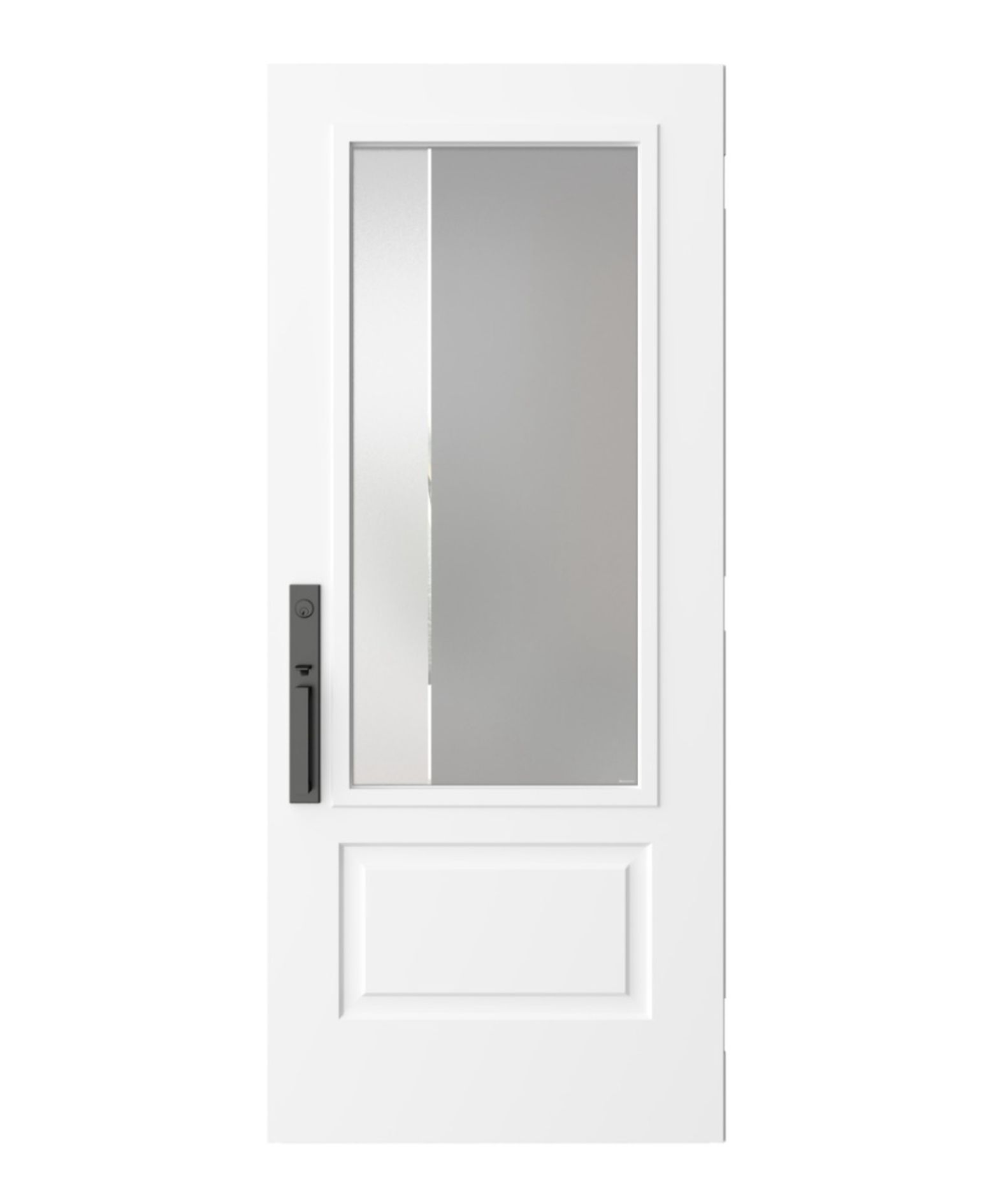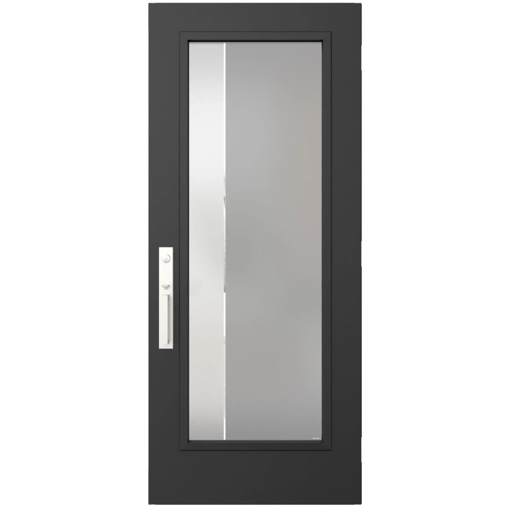 Nuando features a simple and minimalist silk-screened design with a gray sandblasted glass finish. Available in right or left versions. Double glazing with energy-efficient glass, sealed and filled with argon gas.
