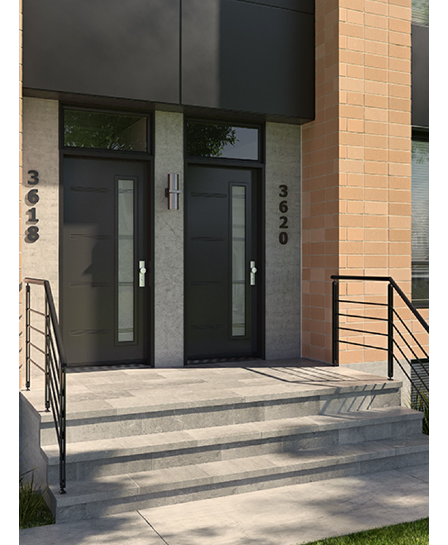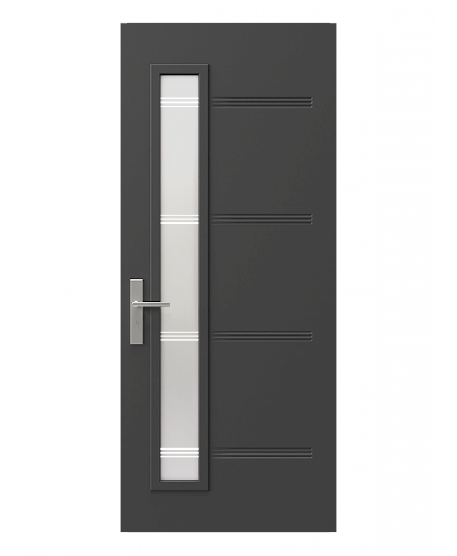 This fashionable new model featuring a classic design offers privacy, while letting in a maximum amount of natural light. It’s shown here with satin black glass.