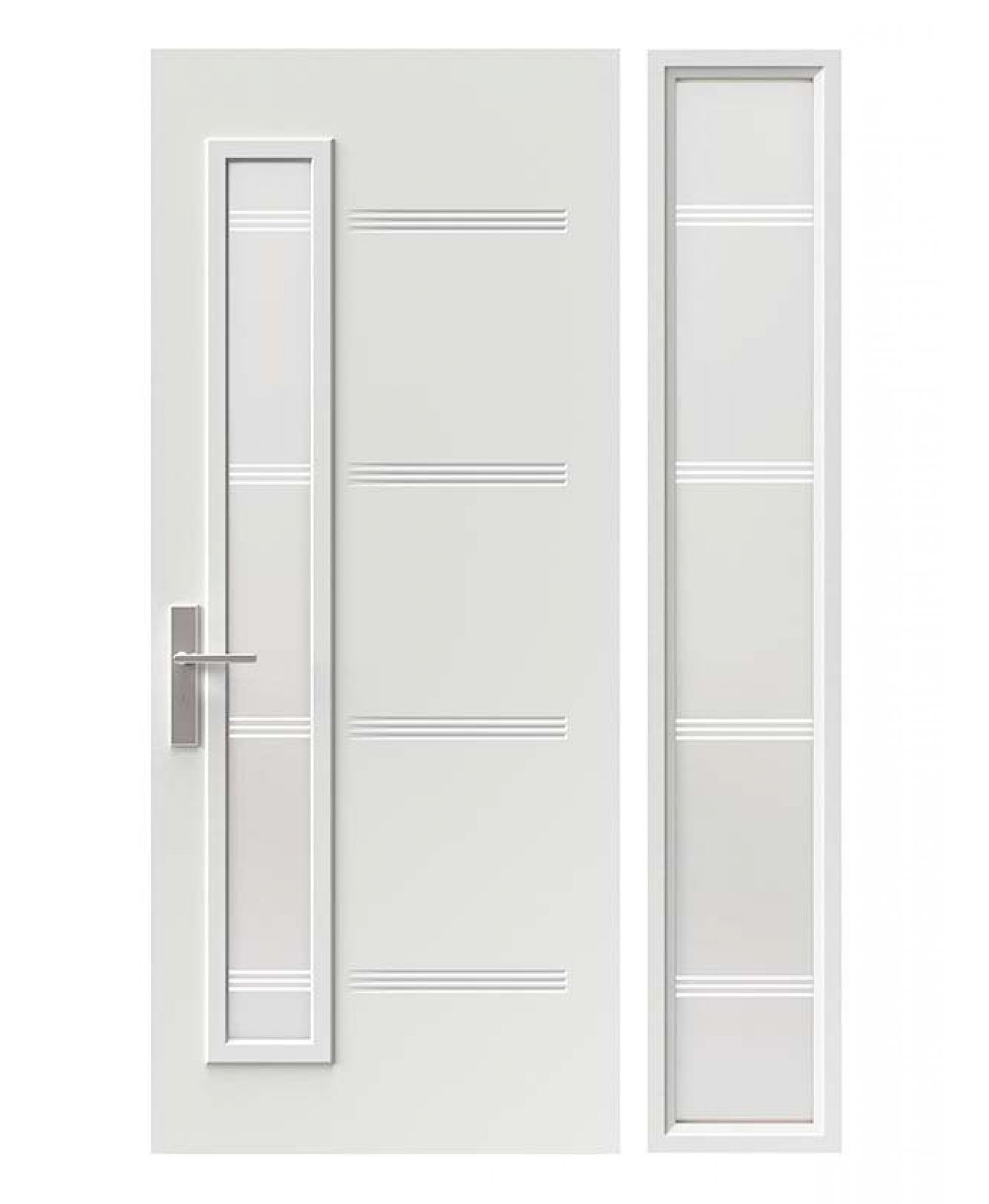 Magnetic weather-stripping in the front and on the knob side. Compression weather-stripping on the hinge side. Polyflex weather-stripping on the top and sides.