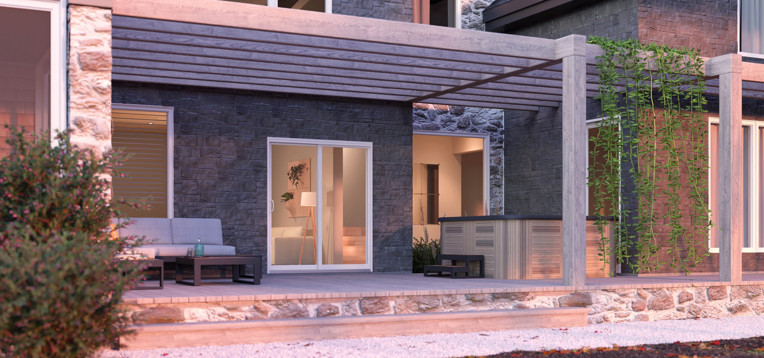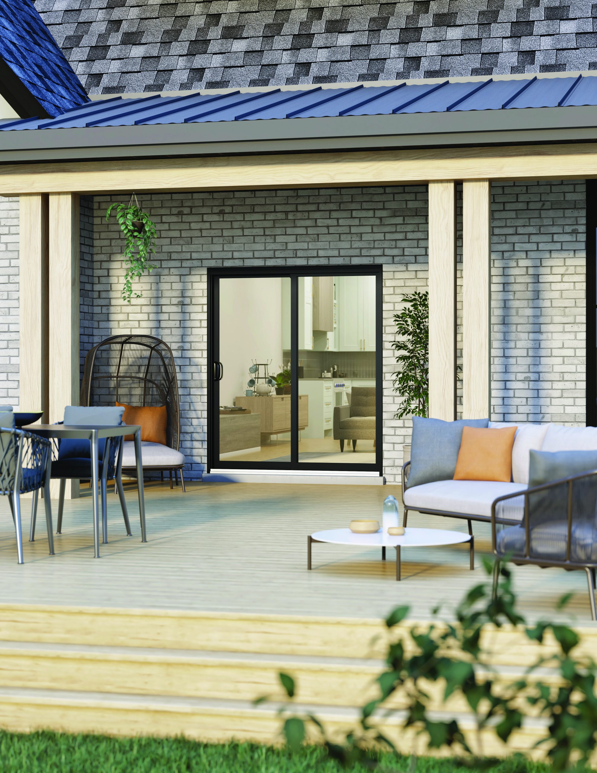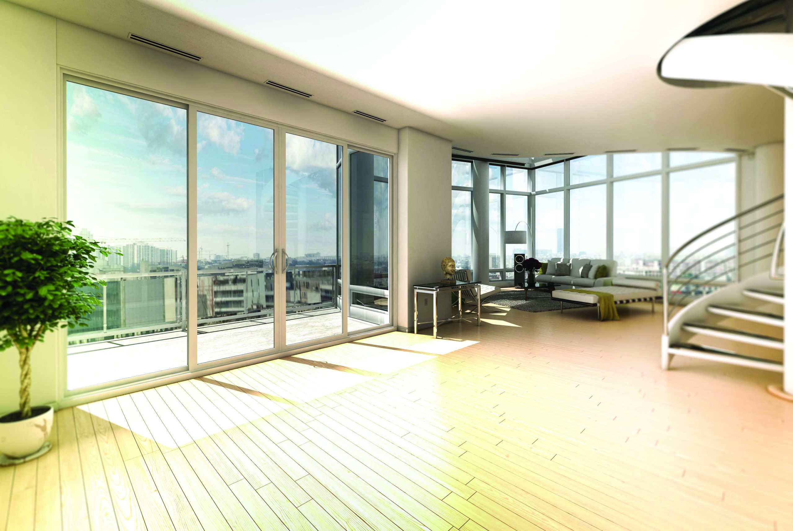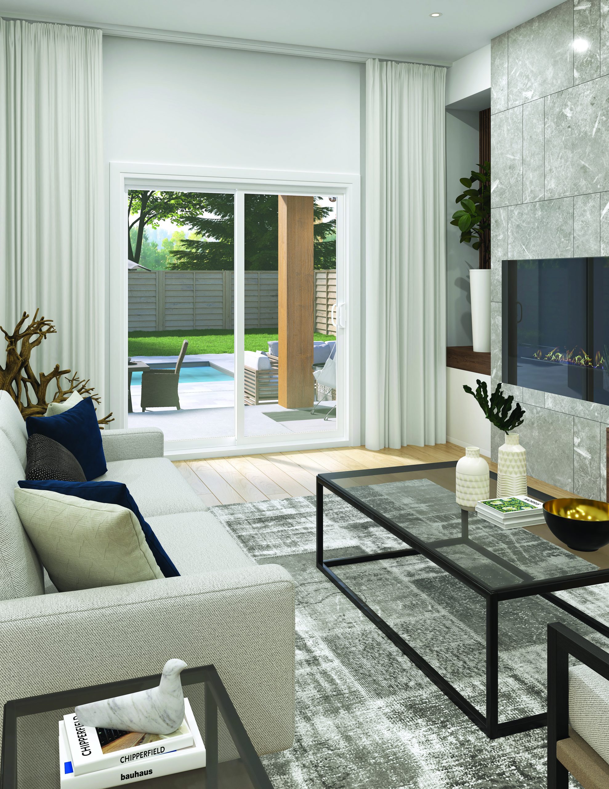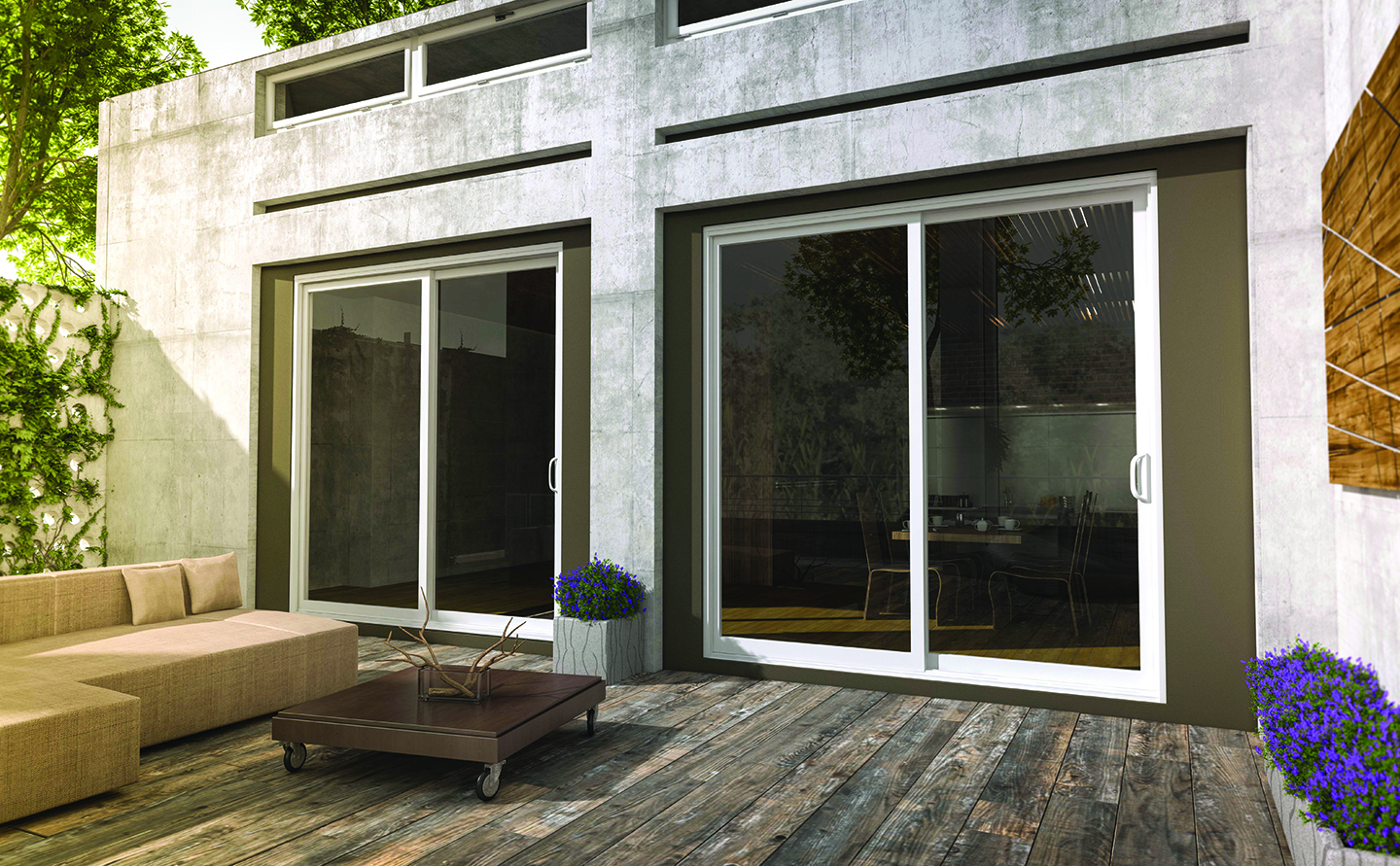 This four-panel aluminum model provides exceptional comfort and unrivaled energy efficiency. The Luma patio door features aluminum panels with a high-performance polyamide thermal break, thermopane glass on the outside and regular glass on the inside. The door offers incomparable acoustic impedance, while the sturdy aluminum frame provides enhanced sturdiness and durability. The screen door is on the inside, so it doesn’t affect the outward appearance of the building.